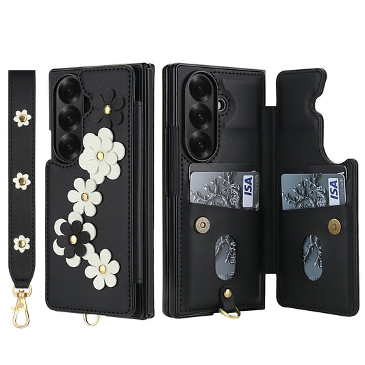 Wristband Lanyard Card Slot Leather Case Samsung Z Fold Phone Case