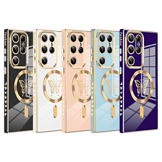 Solid color electroplated butterfly magnetic Samsung mobile phone case