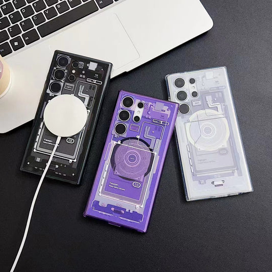 Electroplating magnetic transparent all-inclusive glass Samsung mobile phone case