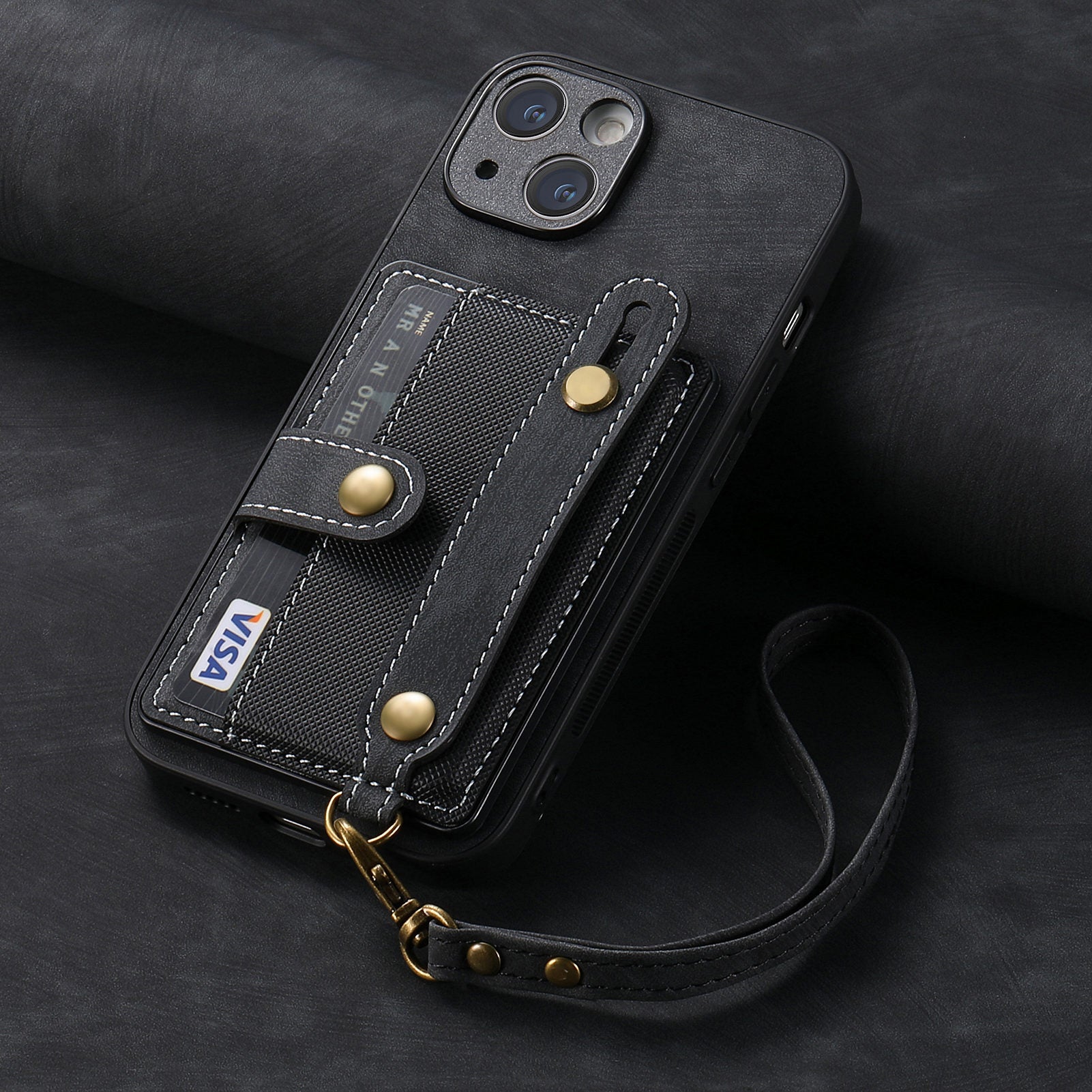 Wristband Lanyard Card Slot Leather Case Apple Phone Case